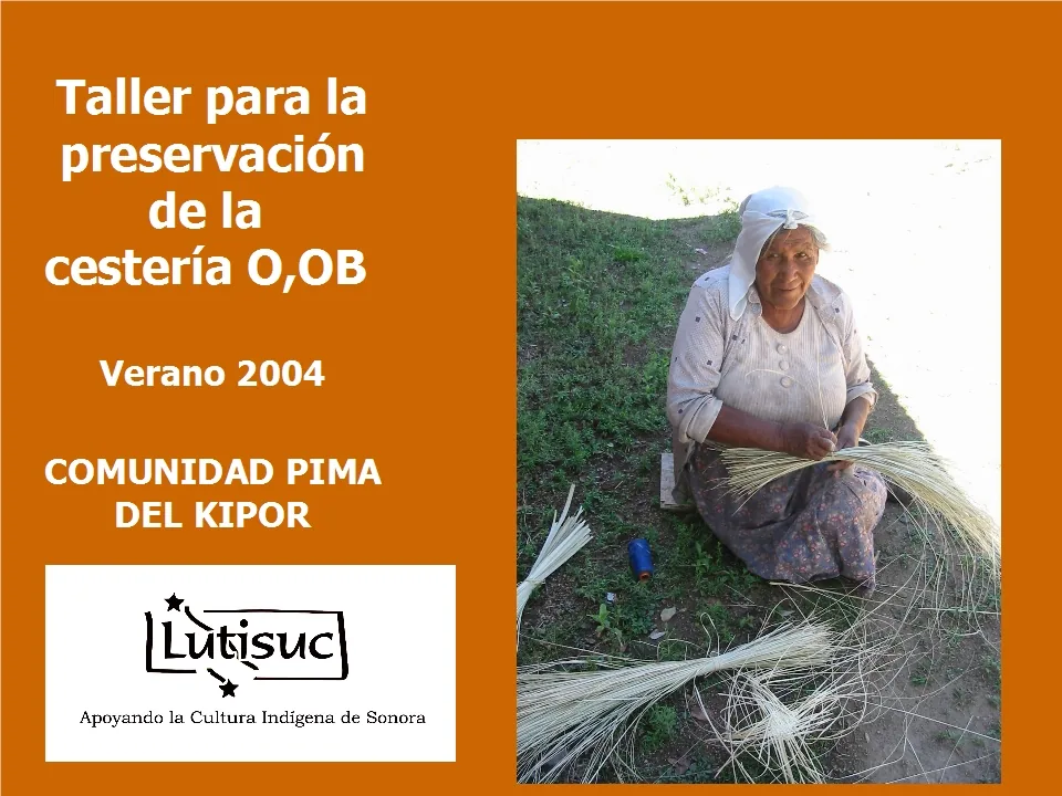 Estas presentaciones fueron elaboradas después de los talleres de rescate y preservación de la cestería y alfarería pima. En ellos puede apreciarse todo el proceso, llevado a cabo en la comunidad de El Kipor en el año 2004, organizado e impulsado por LUTISUC y dirigido por ancianas indígenas pimas que transmitieron su conocimiento tradicional a las más jóvenes, interesadas en aprender estas técnicas.