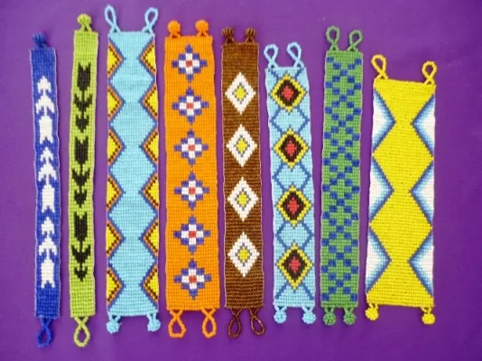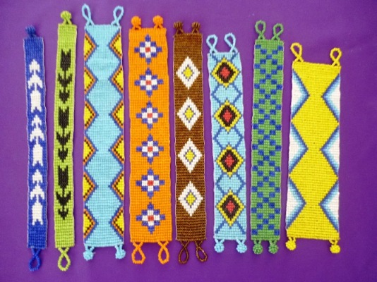 Para trabajar la chaquira utilizan una especie de telar en la que van cruzando los hilos transversales con los longitudinales, de manera que las cuentas de chaquira quedan firmemente ajustadas siguiendo un diseño predeterminado que está basado en los diseños de sus antepasados.