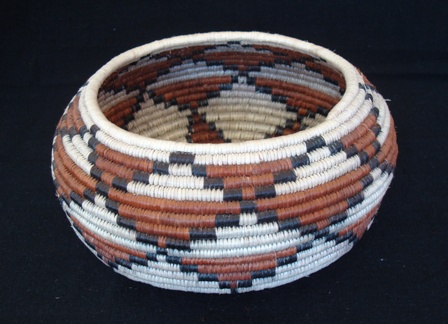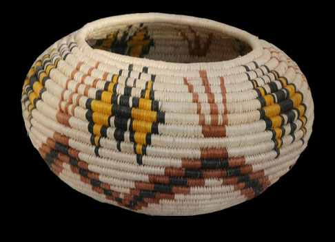 CESTERÍA SERI: CANASTAS Y CORITASLa cestería seri es tan laboriosa en su ejecución y tan bella en sus diseños que puede considerarse una de las mejores del mundo en su género. La materia prima es la madera de un arbusto considerado sagrado para ellos: el Torote prieto (Jatropha cuneata), llamado Haat en lengua comca’ac. Se elabora por las mujeres del grupo, que buscan las ramas, las tuestan al fuego para eliminar la corteza y ayudándose de sus dientes van rasgando tiras de diferentes grosores, dependiendo del diseño, tamaño y complejidad del tejido; agrupan las tiras en pequeños bultos y las tiñen con productos vegetales: para el color negro utilizan la corteza del árbol del mezquite, para el marrón o café la raíz del cosahui o heepol, machacada y cocida y para el color amarillo la flor de somete. Después de teñidas se remojan en agua de mar para hacerlas más flexibles, reafirmar su color y protegerlas de termitas o algún otro animal. La artesana seri procura tejer de madrugada y un lugar sombreado para que no se pierda la humedad de la fibra. Con un hueso de venado en forma de punzón y la habilidad de sus manos comienza con un nido en forma de cruz (coafliz) y lo continúa en forma de espiral, entreverando las tiras de color natural con las de color café, negro o amarillo, según el diseño geométrico o figurativo que ya ha creado previamente en su mente: zig-zag, mariposas, venado, flores estilizadas, etc. Para una persona que no conoce el trabajo y grado de dificultad que existe detrás de una corita (en forma de plato) o de una canasta (en forma de olla) de origen seri, el precio de su venta quizás le parezca alto. Pero una cestería de este tipo, de madera tejida, es de un alto valor en el mercado por la calidad de su tejido, la belleza de su diseño y la dificultad en su elaboración. Es un objeto de arte vivo que manifiesta la fuerza, la magia y la fuerte energía del desierto de Sonora.