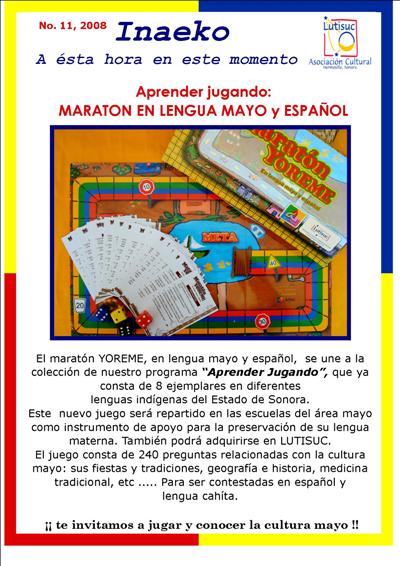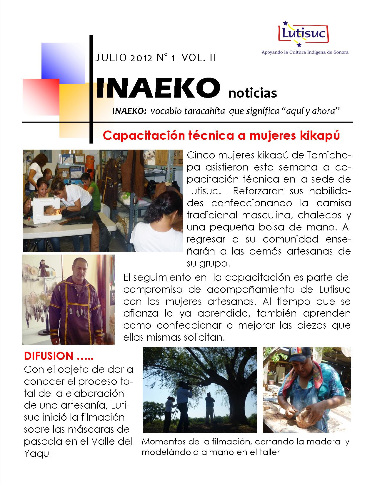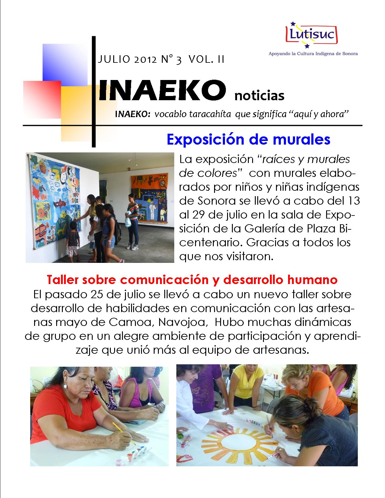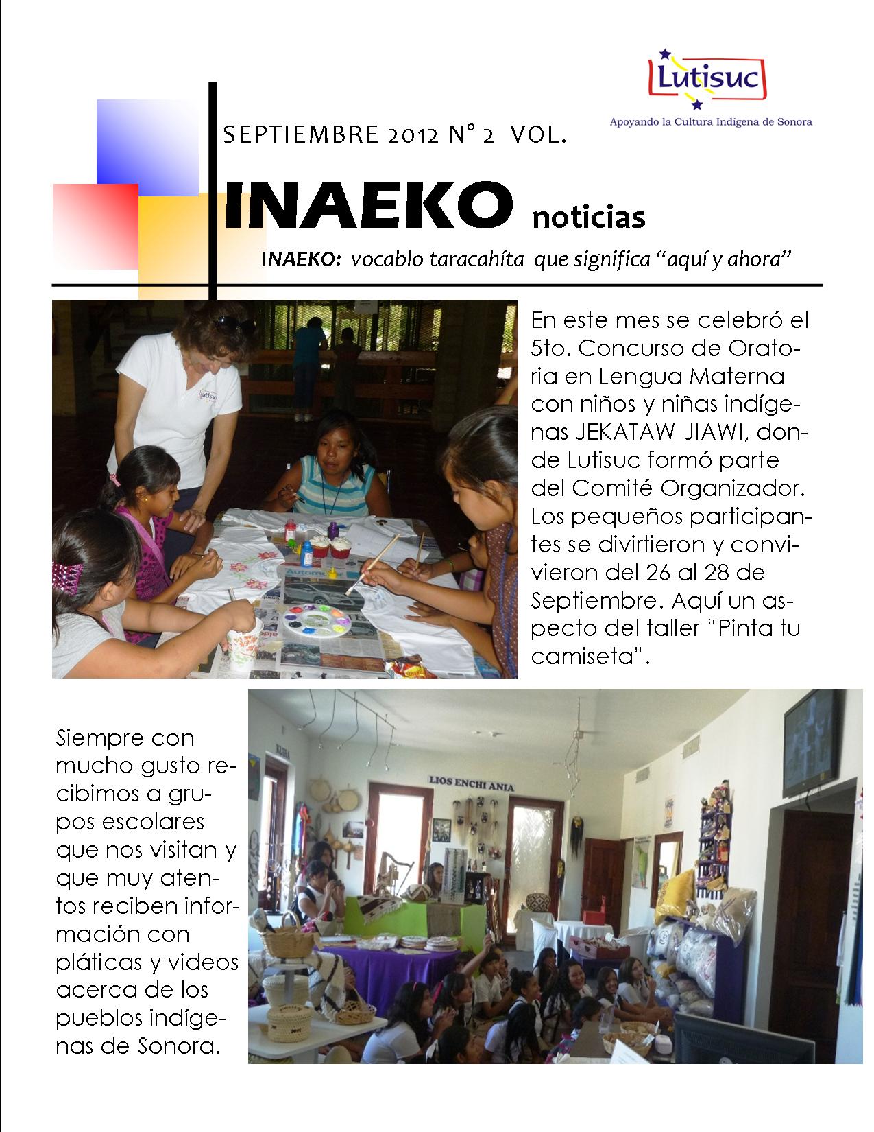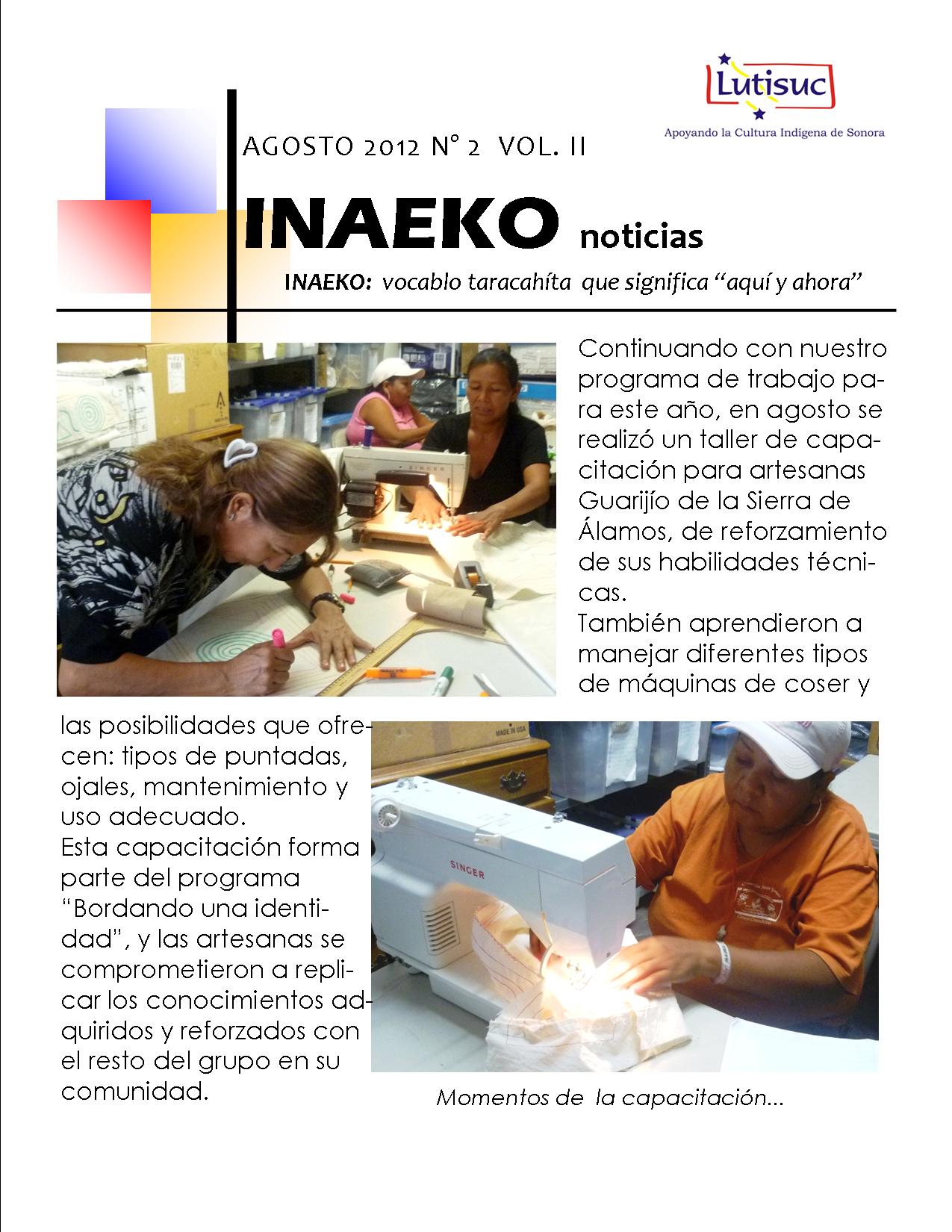 Inaeko “A ésta Hora y en este momento”Con el objeto de dar a conocer periódicamente nuestras actividades, enviamos mensualmente un pequeño boletín al que denominamos con la palabra yaqui Inaeko, que quiere decir “ a esta hora y en este momento” aludiendo a nuestro trabajo más reciente en ese momento. Estos son los boletines enviados desde el primer número en marzo de 2008. |