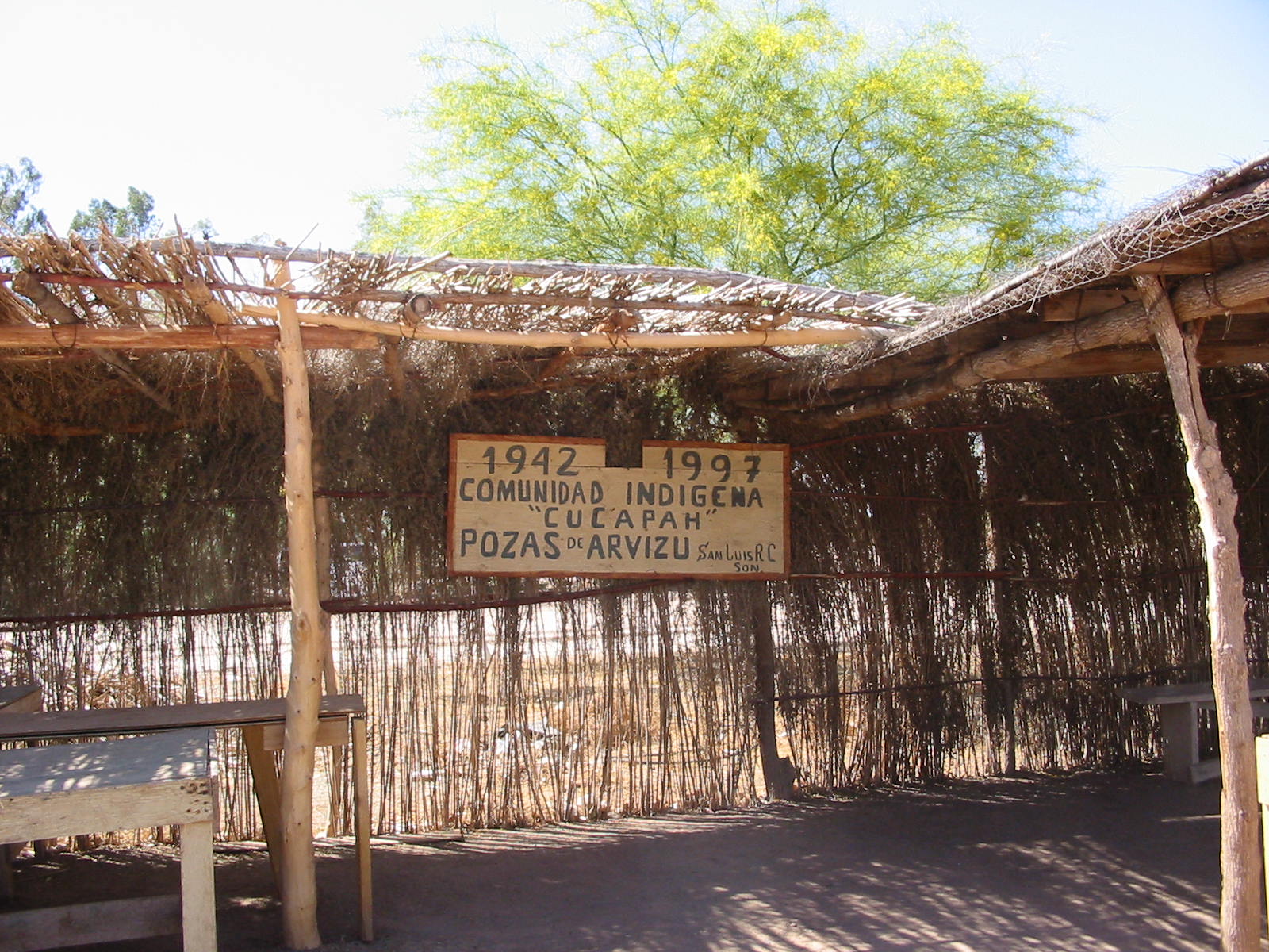El río Colorado, a 5 Kms del ejido Pozas de Arvizu, ya que del curso cambiante de sus aguas dependían para sus actividades agrícolas. Precisamente el nombre Cucapá en su lengua quiere decir el que llega, el que viene, por su desplazamiento según fuera la época del año y por tanto sus actividades agrícolas.