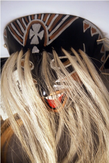 La máscara está trabajada en madera, generalmente de torote prieto o de raíz de álamo, coloreada en negro, rojo y blanco. Su barba y cejas largas, de color blanco, están trabajadas con crin de caballo y cubren todo el rostro de la máscara. La expresión de su rostro es burlona y muchas veces se representa sacando la lengua. En la frente lleva una cruz para alejar de la fiesta a los malos espíritus.