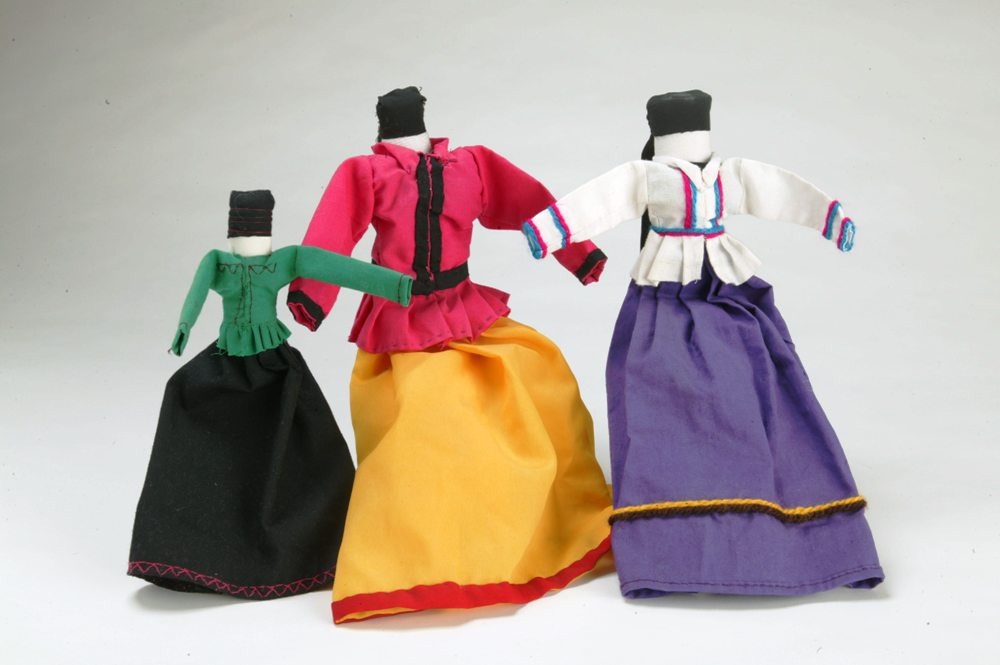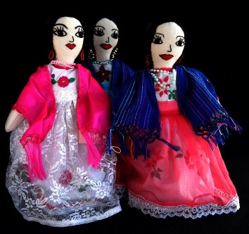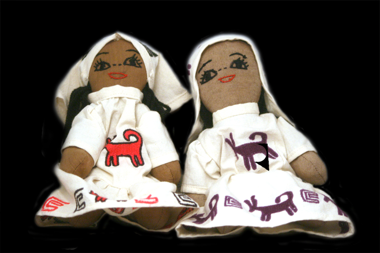 MUÑECASEl programa “Bordando una identidad” otorga un lugar especial a los talleres de confección de la muñeca representativa de cada grupo con el que se ha participado. En la mayoría de los casos fue necesario crearla. A lo largo de los años y desde 2002, han surgido de estos talleres las muñecas: pima, kikapú, guarijío, versiones recuperadas de la mayo y la cucapá, así como labores de perfeccionamiento de la muñeca yaqui, que ya existía; sólo la enigmática muñeca seri ha permanecido igual. Las muñecas pima, mayo, kikapú y guarijío nacen en los años 2002, 2007, 2008 y 2010 respectivamente, en talleres de preservación y rescate cultural y de capacitación técnica llevados a cabo por Lutisuc Asociación Cultural I.A.P. para capacitar a mujeres artesanas de esas etnias. La intención inicial fue apoyar las acciones de reafirmación de la identidad cultural en cada grupo pues Sonora no cuenta con un traje representativo único y dada la diversidad cultural que posee, se consideró necesario incluir en los talleres a la muñeca. Se inició con la pima en el tiempo que se trabajaba en la recuperación del traje tradicional. De inmediato fue evidente que este taller había tocado fibras sensibles en las mujeres; por un momento podían volver a ser niñas, podían jugar y verse reflejadas en esas pequeñas formas hechas en manta con relleno de pedacería de tela. También podían hacer muñecas para sus hijas. El mismo efecto se dio en todos los grupos a lo largo del tiempo. Varias artesanas de diferentes grupos han obtenido premios en concursos por sus muñecas que conjugan elementos tanto lúdicos como de reafirmación cultural y de género. Esta colección de pequeñas muñecas, de aproximadamente 30 a 35 cms. de altura, totalmente elaboradas a mano con diferentes telas y adornos, representan a la mujer indígena del Estado de Sonora. Cada una de ellas porta el traje representativo de su etnia. La muñeca yaqui con su falda y blusa de popelina bordada con vistosas flores de colores, con una sobre falda de organza transparente, rebozo y adornos como peinetas en el pelo, aretes y collares. En los pies calza huaraches al modo tradicional yaqui. También se encuentra la versión de muñeca con traje tradicional cotidiano, en el que no lleva flores bordadas sino telas brillantes de colores vistosos. La muñeca mayo con vestido y falda de manta, lleva bordados alusivos a sus petroglifos y un rebozo de tela de céfiro sobre sus hombros o sobre su cabeza. La muñeca pima porta un vestido de manta, bordado con los dibujos de sus cuevas o bien un vestido floreado. También puede llevar un sombrero de palma sobre la pañoleta que cubre su cabeza para protegerse de las inclemencias del clima de la sierra. La muñeca seri, con su traje típico de popelina de colores, no tiene piernas, brazos ni cara, expresando un misterio y una posibilidad de que cada quien en su imaginación le ponga un rostro. Existe la versión femenina y también hacen pequeños muñecos y conjuntos familiares que colocan en pequeñas balsas de juguete. Al parecer, esta manera de elaborar se remonta a tiempos antiguos cuando utilizaban huesos como la base de la realización de las muñecas, a los que agregaban tela para revestirlas. También existe la llamada “muñeca de cuna” donde una pequeña forma de bebé esta dentro de un armazón de madera a semejanza de las cunas seris que se elaboraban de raíz de mezquite y servían para transportar a los hijos pequeños en la espalda o sobre la cabeza todavía hace relativamente poco tiempo, la cuna se llama asitj y la versión en pequeño se realiza en torote por ser madera más flexible. La muñeca kikapú luce un vestido de gamuza bordado con chaquira y una cinta de cuero y chaquira sobre su frente, sujetando el pelo. En los pies calza tehuas o botines de gamuza siguiendo la costumbre de esta etnia originaria de Canadá y norte de los Estados Unidos y asentada actualmente en la comunidad de Tamichopa, municipio de Bacerac. Como parte del proyecto, se brindó capacitación a las mujeres de la comunidad y aprendieron a confeccionar el traje representativo kikapú, en sus dos versiones, el de invierno en gamuza y el de verano en telas de algodón. La muñeca guarijío presenta el traje representativo de este grupo, vestidos en telas y colores brillantes, ya sea lisos o en telas floreadas, que pueden tener aplicaciones de encaje, complementado con pañoleta y calcetas oscuras.
